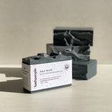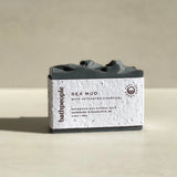 Saponified Organic Extra Virgin Olive Oil, Organic Coconut Oil, Organic Sunflower Oil, Kokum Butter, Organic Castor Oil, Activated Charcoal, Sea Mud and Essential Oil Blend